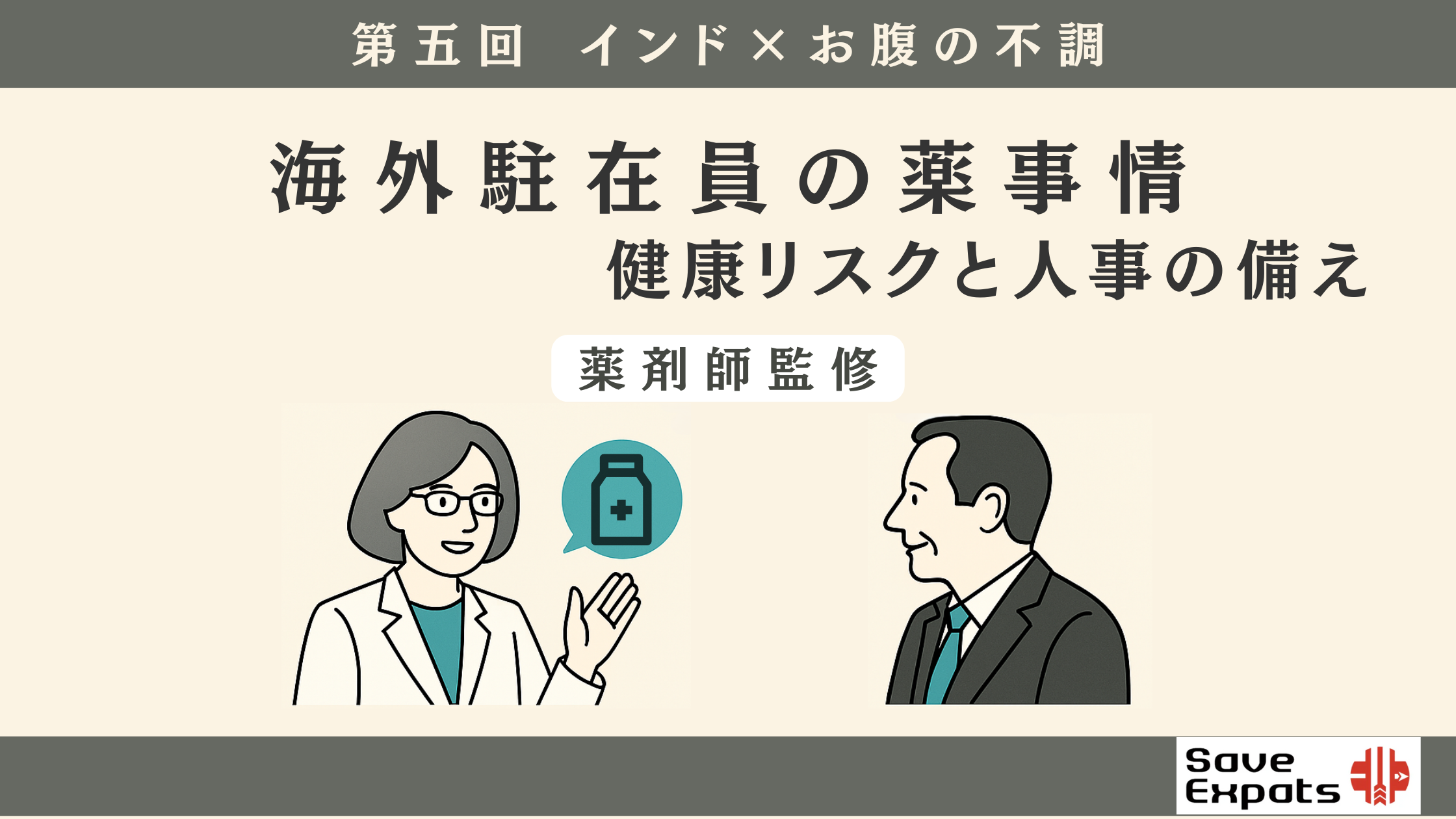 いかがでしたか? 海外での医薬品に関する情報は、赴任者の健康管理において重要な要素です。 次回は、インドで購入可能な整腸剤といった、よくあるお困りごとに使われる市販薬を取り上げます。