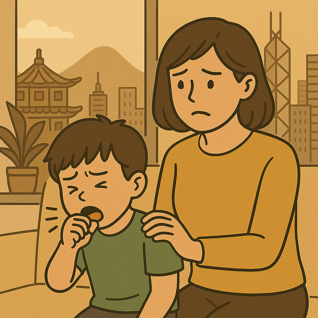 香港では、大気汚染(PM2.5など)の影響もあり、日常的にお子さんが咳き込むケースも少なくありません。日本人駐在者向けの医療インフラは比較的整っている一方で、医療費が高額となることもあるため、お子さんが「喉の痛みがあるが熱はない」「夜間咳がひどくて眠れていない」といった時に受診判断に迷うことも多いようです。