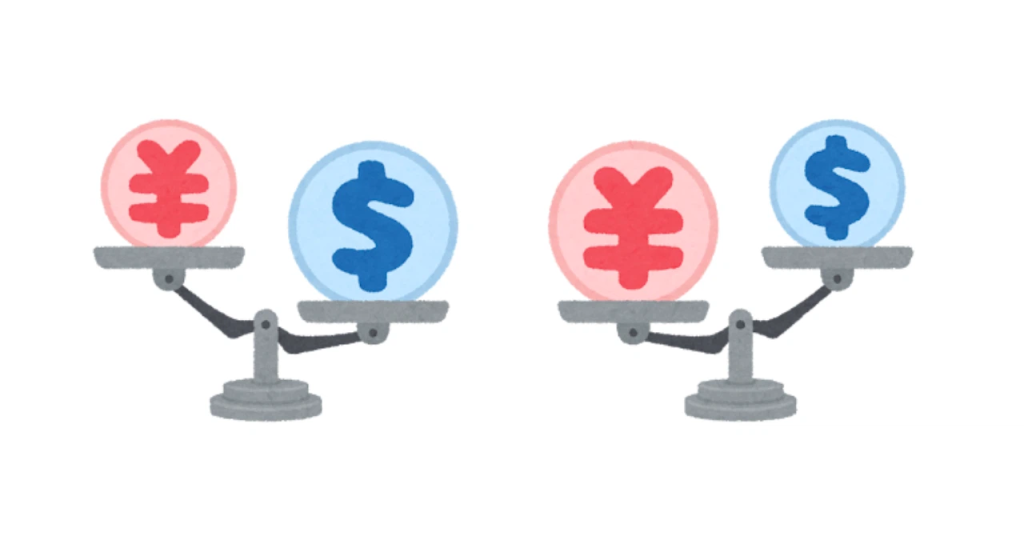 これはビックマックが全世界でおおむね同一品質のものが販売されていて、原材料費や店舗の光熱費、人件費などさまざまな要因を元に単価が決定されることに着目し、基準にしたものです。厳密にはこんなに単純なものではありませんが、購買力平価という概念を理解するにはわかりやすいと思います。