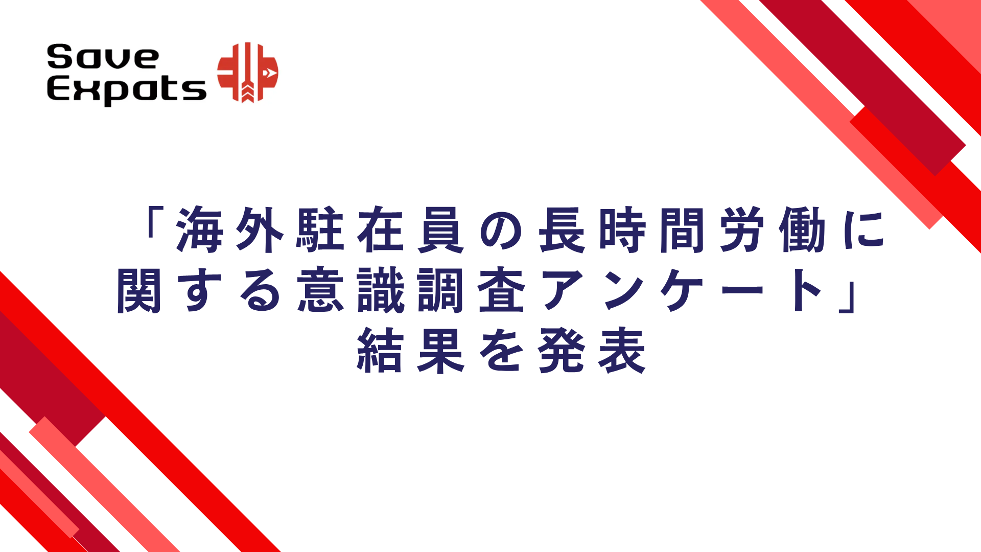 【プレスリリース】「海外赴任者の長時間労働に関する意識調査アンケート」結果を発表